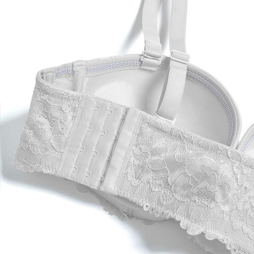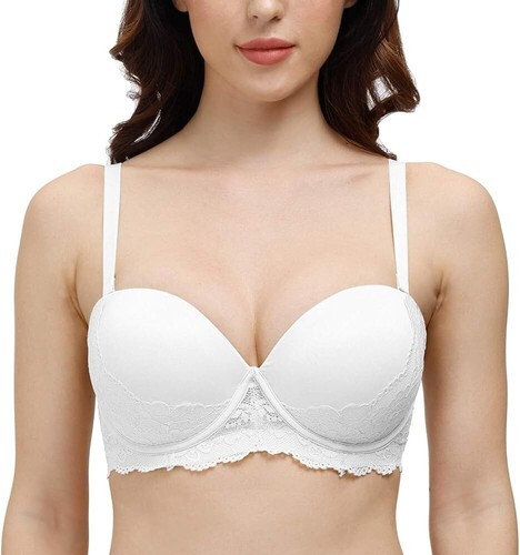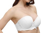 - Women Strapless Push Up Lace Bra Padded Clear Strap Back Convertible White 36 C