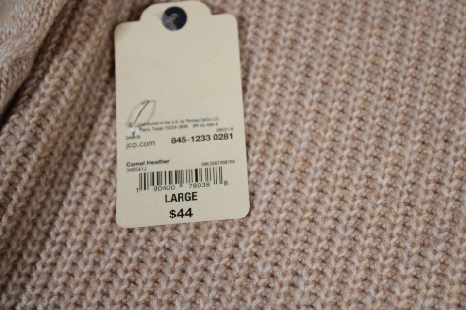 This St. John's Bay women's turtleneck pullover sweater in size large offers comfortable warmth with its long sleeves and classic fitted design. Crafted for layering or standalone wear, it provides a polished look that transitions easily from casual to semi-formal settings. The turtleneck adds extra coverage for cooler days while maintaining breathability and ease of movement. Ideal for versatile styling, this sweater combines functionality with timeless appeal.