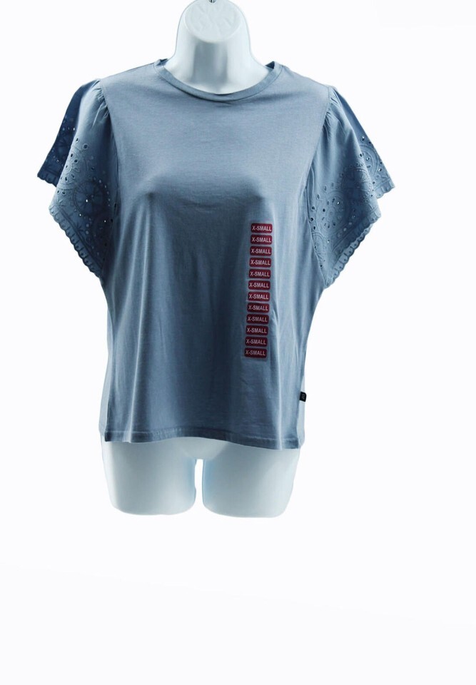GAP Women Eyelet Flutter Short Sleeve Crew Neck Top XS Light Blue