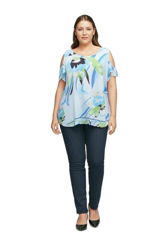 Elevate your wardrobe with this stylish JM Collection blouse. Featuring a beautiful white floral pattern, this plus size top has a round neckline and short cold-shoulder sleeves that add a touch of sophistication to your look. Made of high-quality polyester and spandex materials, this blouse is comfortable and perfect for any occasion. The blouse is a basic style that can be paired with any bottom, making it a versatile addition to your closet. Get ready to turn heads with this must-have top!