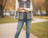 - Women Vest La Fiorentina Women's Plush Rabbit Fur Vest Size Size S/M Gray