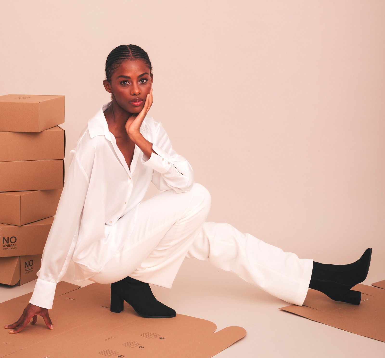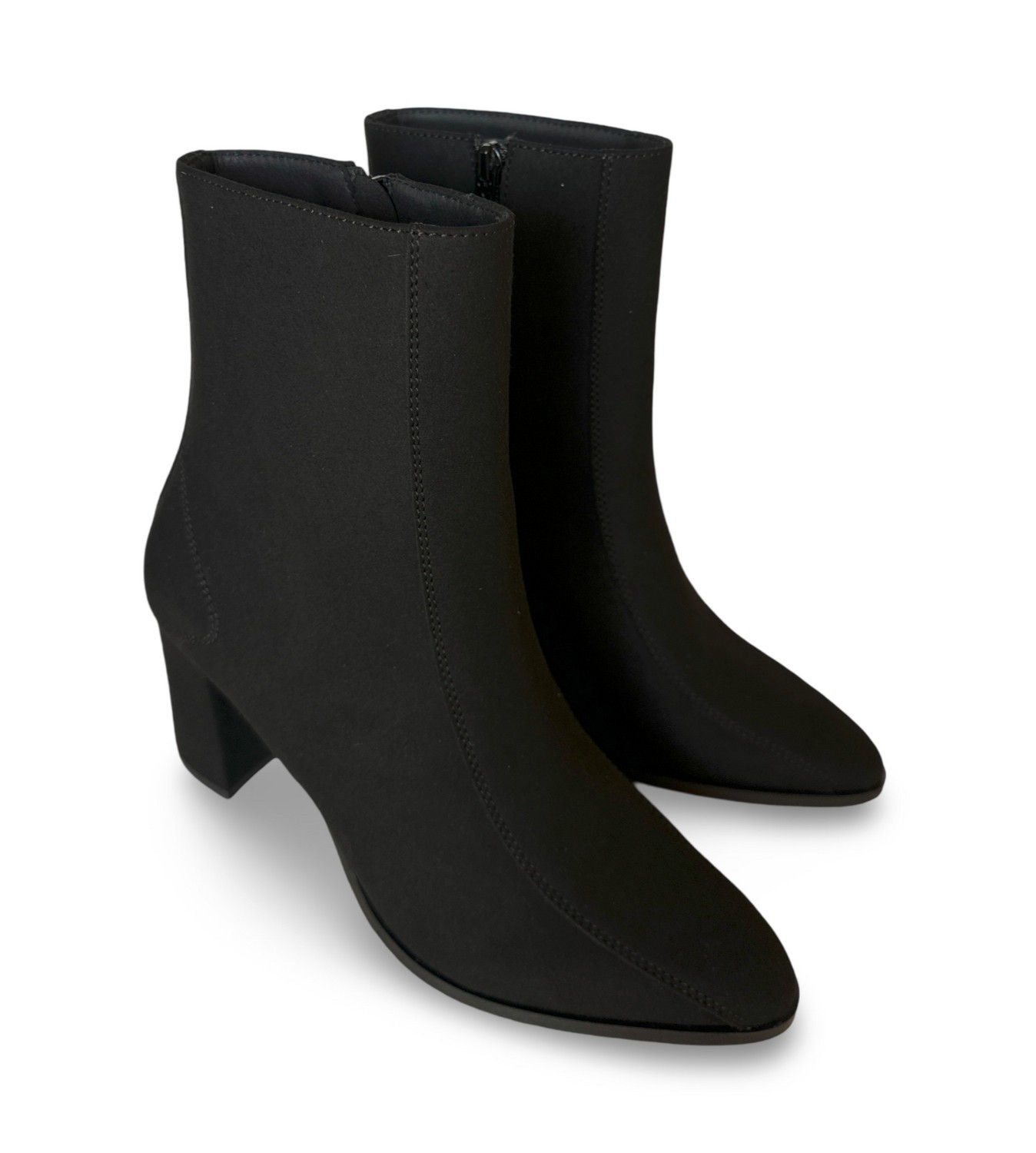 Women black ankle boots vegan suede heels point toe zipper casual office dress