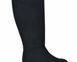 - Women black tall boots vegan suede flats high knee zipper casual office dress