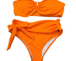 - Women's 2 Piece Bikini Set Large Rib Knit Strapless Knot Front High Waist NEW