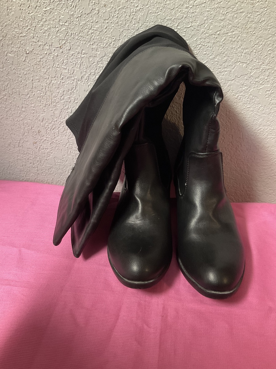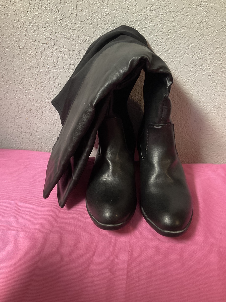 - Women’s Ashley Stewart Black Knee Boots Size 8 Wide