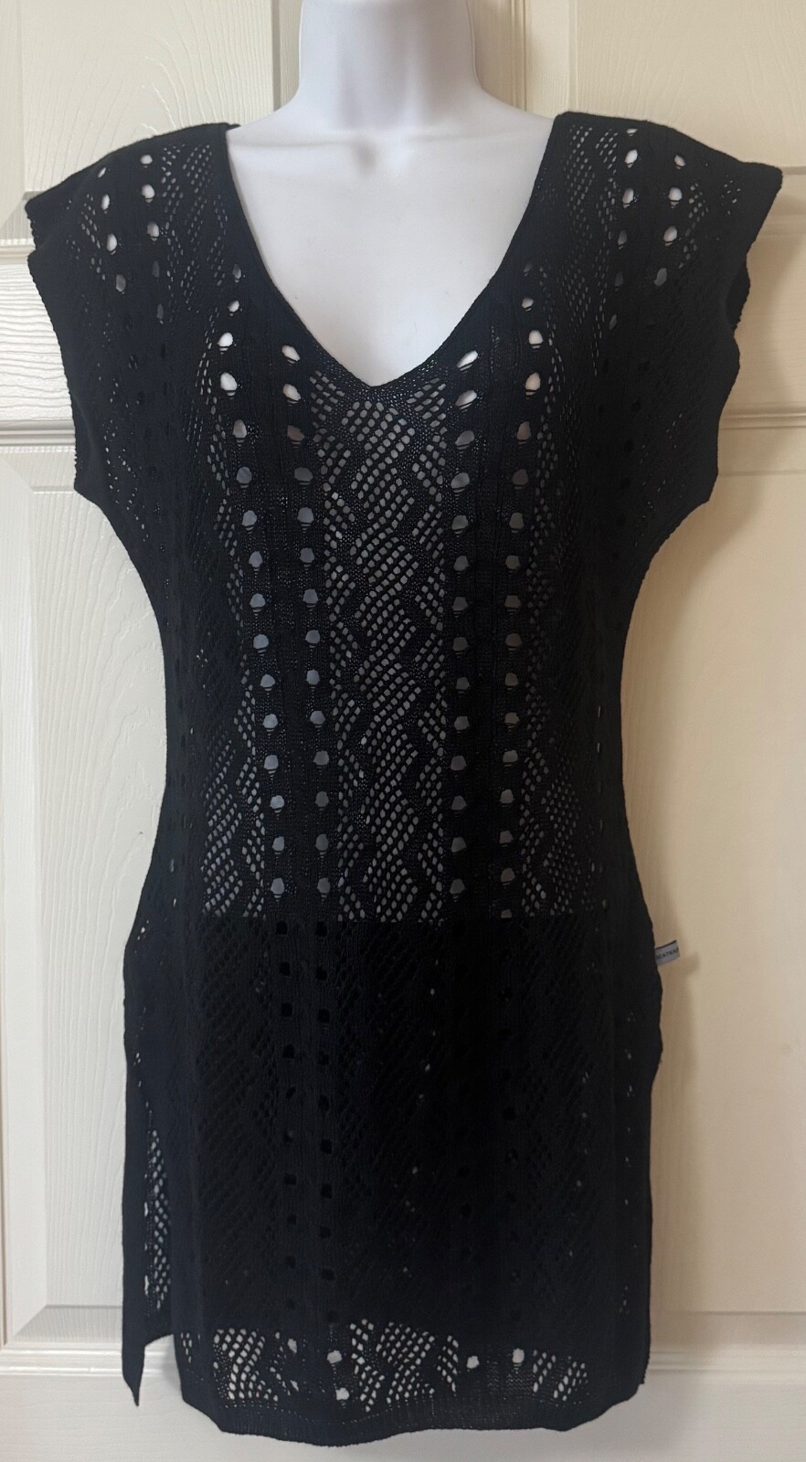 - Women's Black Crochet Cover Up 100% Cotton Beachy Short Sleeve Size S/M NWOT