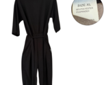 Women’s Black Jumpsuit XL Tie Waist Stretch 3/4 Sleeve One Piece Romper Elegant