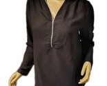 Women's Black ¼ Zip Up Blouse Roll Tab Sleeves Long Sleeve Small