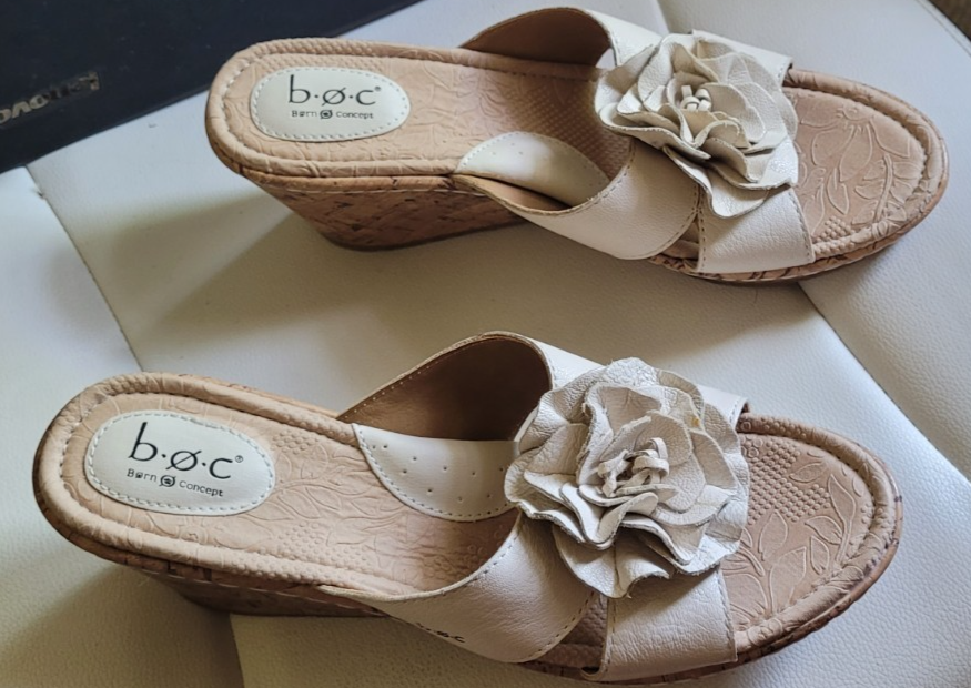 - Women's Born B.O.C. Concepts Size 11 Leather Cork Wedge Mule Rosette Summer Cute