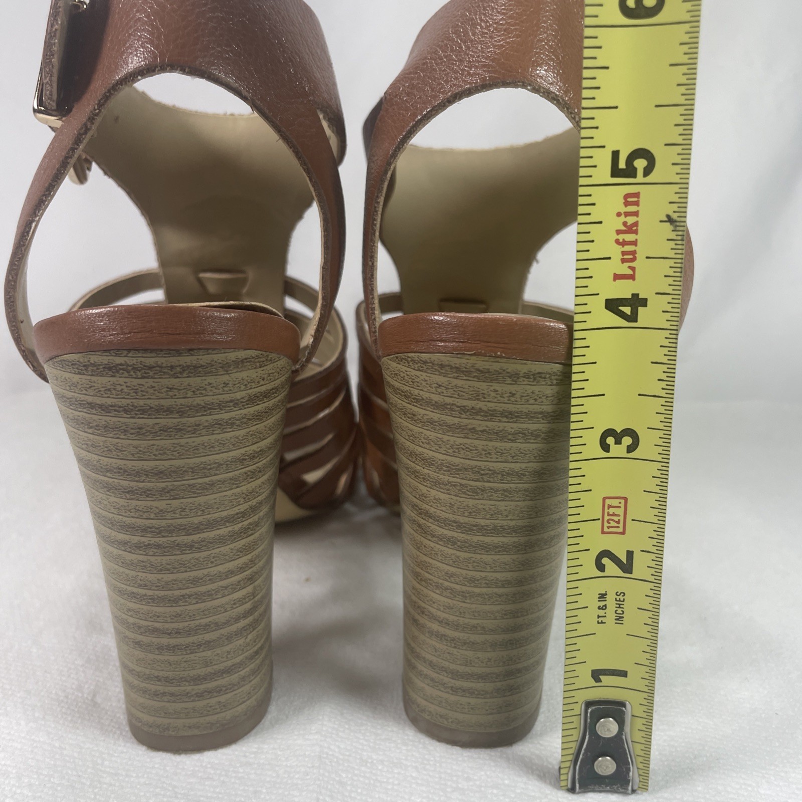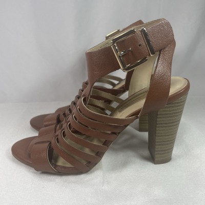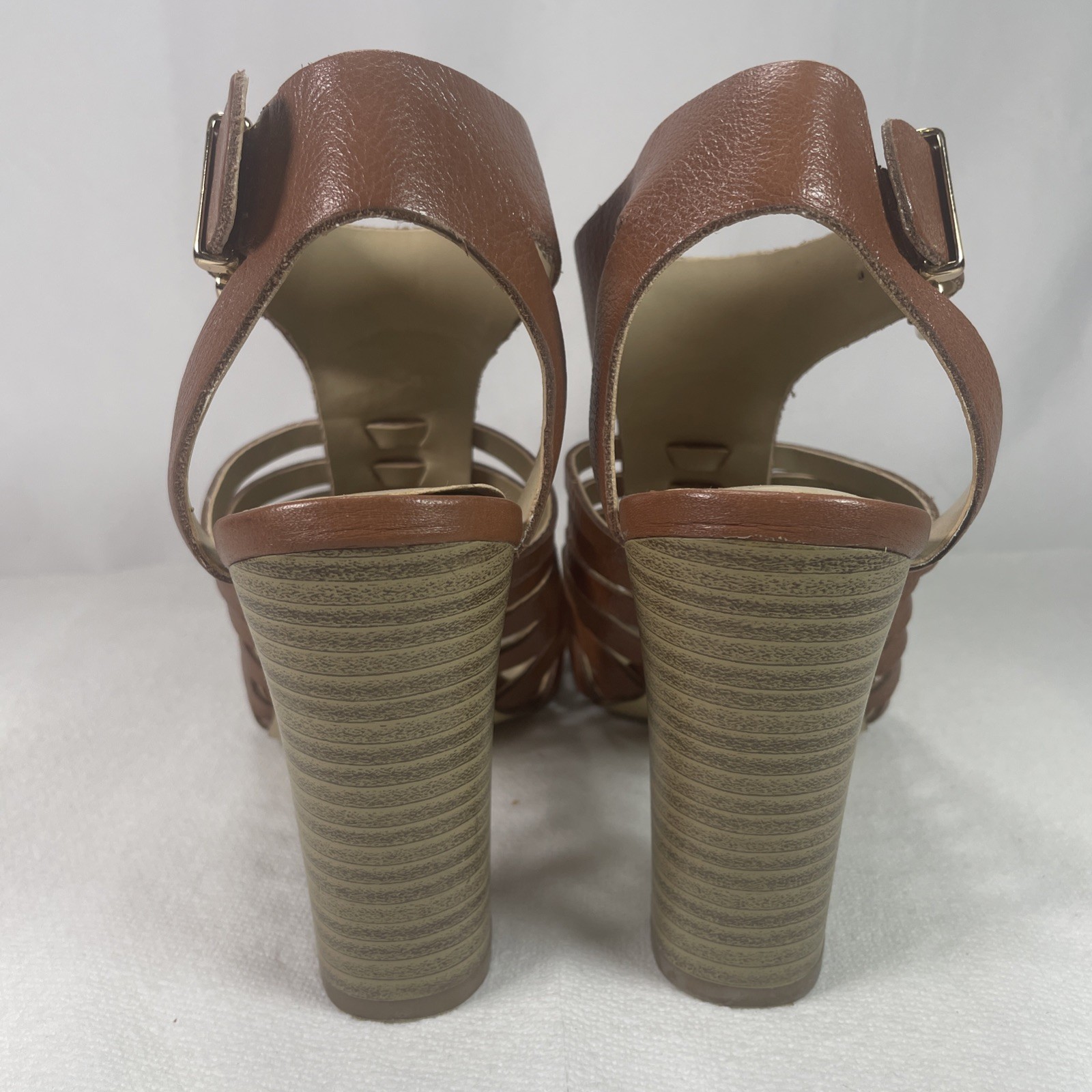Women’s Brown Leather Open Toe Heels Pump Size 7 1/2 INC International Concepts
