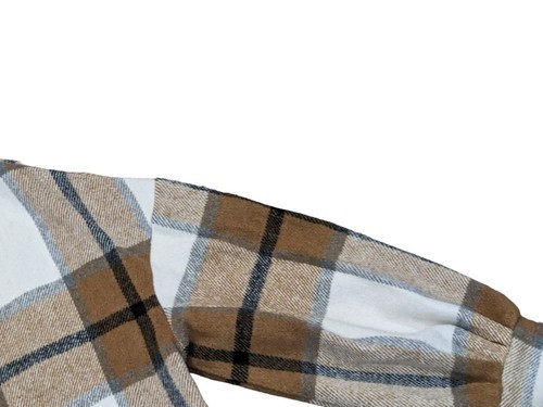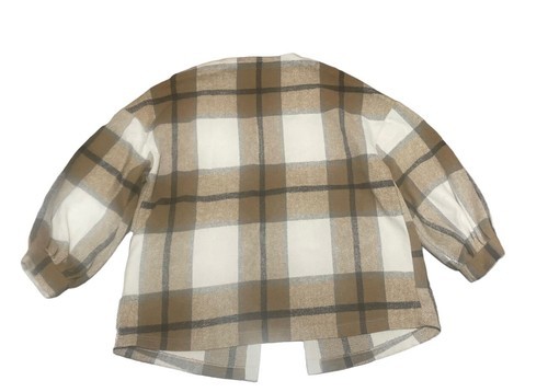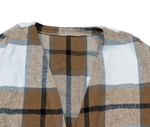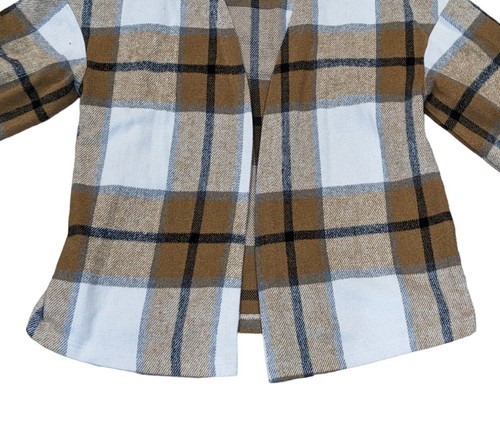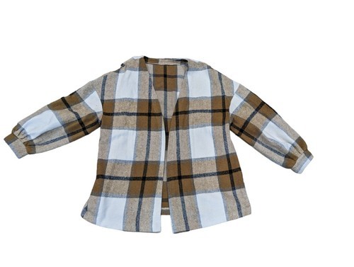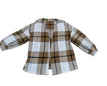 This is a beautiful thick plaid heavyweight flannel cardigan Style shacket. Has the style and versatility of a jacket with a little bit more class :-) Bubble sleeves. The size tag has been taken out but it's approximately a size medium. Measurements are in the pictures. Approximately 28 in from the shoulder to the bottom hem and approximately 22 in flat across from our picture armpit completely unstretched and with the edges just barely touching. Excellent condition! Super cute and cozy