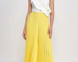 Upgrade your wardrobe with our Cami Asymmetrical Ruffle Detail Pleated Bottom Jumpsuit in Yellow/Off White. Add it to your collection today and experience the perfect blend of style and sophistication!