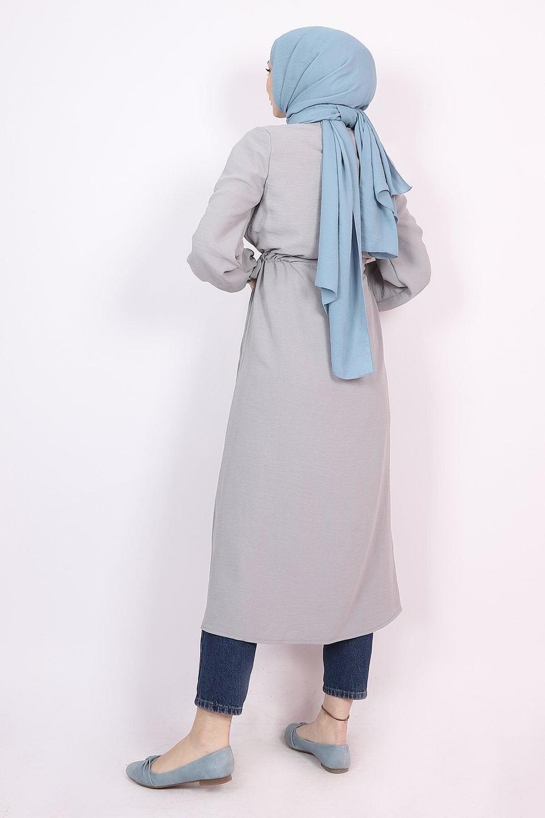 Product length 110 cm Straight cutAerobine fabricSash detailUnlinedNo see-throughMannequin DIMENSIONS: Wearing Size 36/S Mannequin Length 168 cm Dimensions 85/61/82