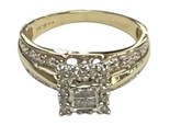Type: Cluster ringWeight: 2.1Karat: 10ktMetal: Yellow GoldGender: Women'sStyle: ClusterSize / Length: 7Owner applied: 10kStone 1 quantity: 4Stone 1 shape: PrincessStone 1 color: ClearStone 1 weight (total): .25Stone 1 type: DiamondStone 2 Quantity: 24Stone 2 Shape: RoundStone 2 Color: ClearStone 2 Weight (Total): .25Stone 2 Type: DiamondCondition:Used