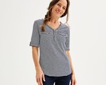 Women's Croft Barrow Elbow Sleeve Utility Henley Top, Size: Small, Blue Stripe
