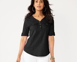 Women's Croft Barrow Elbow Sleeve Utility Henley Top, Size: XXL, Mineral Black