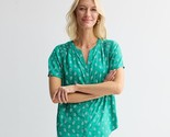 Women's Croft & Barrow® Short Sleeve Femme Blouse, Size: Medium, Rich Green