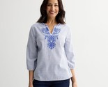 Women's Croft Barrow Three Quarter Sleeve Embroidered Blouse, Size: Large, Blue Micro Stripe