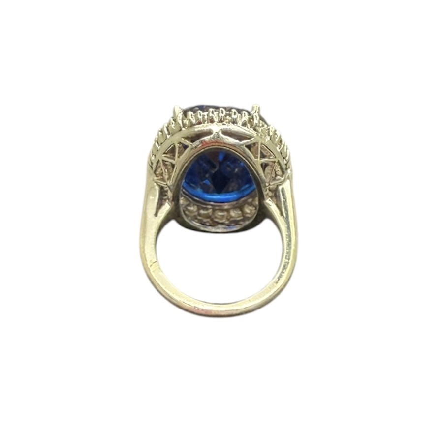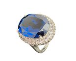 Type: Fashion RingWeight: 7.4Karat: .925Metal: SilverGender: Women'sStyle: FancySize / Length: 6Owner applied: Du JayStone 1 quantity: 1Stone 1 shape: OvalStone 1 color: BlueStone 2 Quantity: 22Stone 2 Shape: RoundStone 2 Color: ClearStone 1 weight (total): 10Stone 2 Weight (Total): 1.76Condition:Used