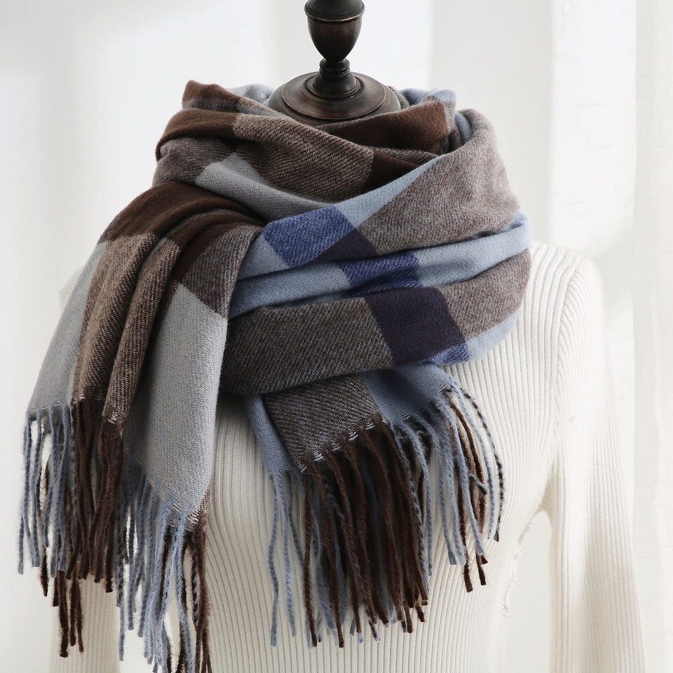 - Women's Faux Cashmere Plaid Scarf Blue Ultra-Soft Winter Wrap