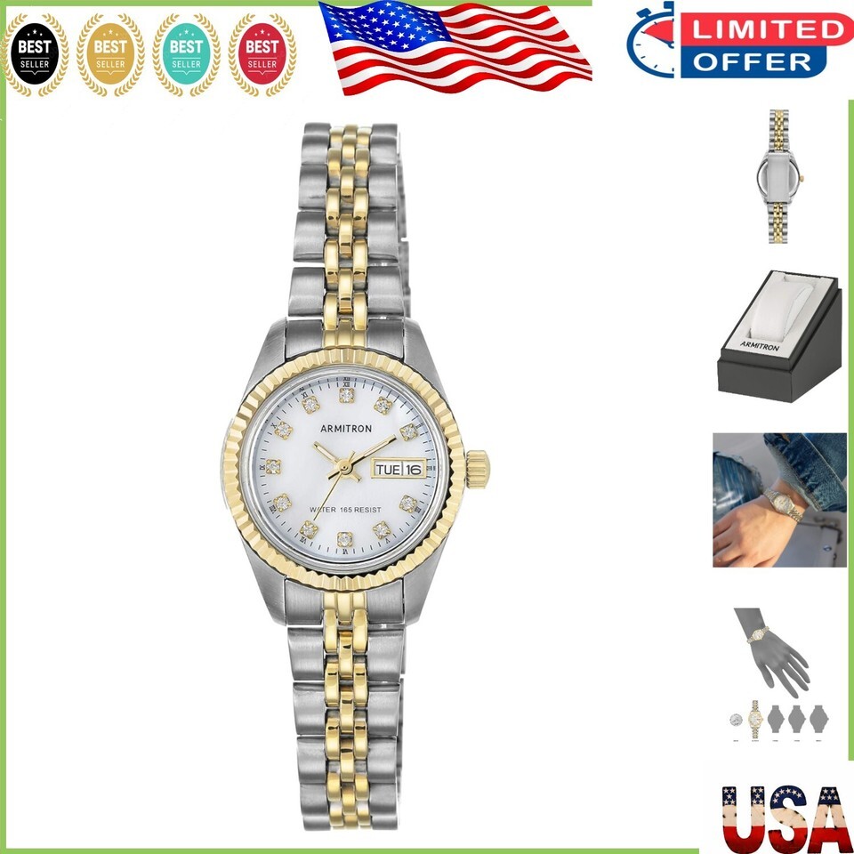 Women's Genuine Crystal Mother-of-Pearl Watch - Timeless Two-Tone Elegance