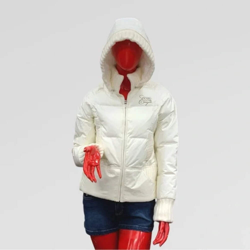 - Women's Lady Enyce Vintage Dirty White Quilted Puffer Hooded Jacket NWT