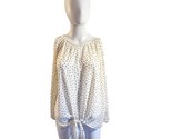 Women’s Large White Polka Dot Blouse Tie Front Long Sleeve