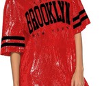 Women's Sparkly Sequin Short Sleeve T-Shirt Dress Casual Loose Cute Tunic Blouse size M Brooklyn Red