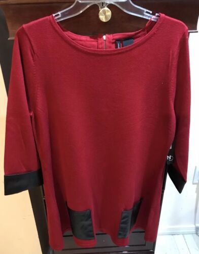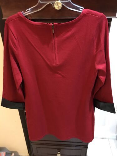 - Women's New Directions Red Crew Neck2/3 Short Sleeve Blouse SzSmall Faux Leather