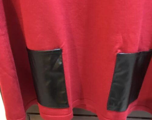 Women's New Directions Red Crew Neck2/3 Short Sleeve Blouse SzSmall Faux Leather