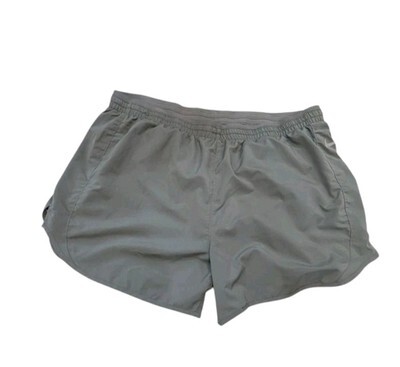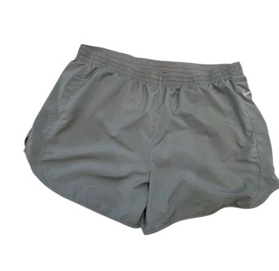 These are women's gray Nike Dri-Fit running shorts. A size XXL. Fully lined. They have a side zipper pocket on the left hip. They are in excellent condition!