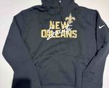The product is a women's Nike Heather Gray New Orleans Saints fleece pullover hoodie in size small. This officially licensed hoodie features the team's logo and colors, making it a perfect accessory for female fans of the National Football League team. Made by Nike, this versatile sweatshirt is ideal for wearing during the regular season to show support for the New Orleans Saints in a stylish and comfortable way.