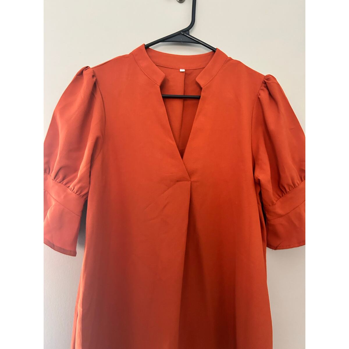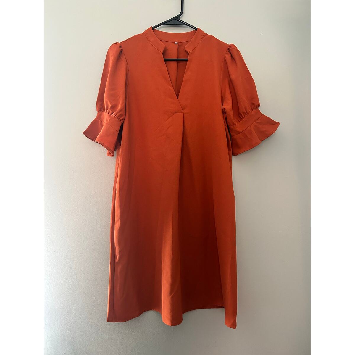 - Women's Orange V-neck Polyester Lightweight Midi Dress Sz S