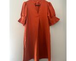 Women's Orange V-neck Polyester Lightweight Midi Dress Sz S