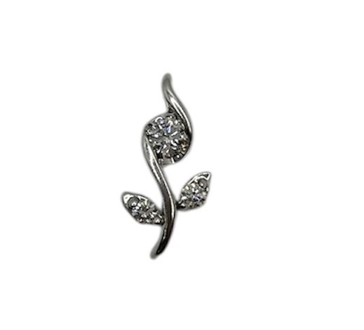 Type: PendantWeight: 0.9Karat: 14ktMetal: White GoldGender: Women'sStyle: FloralSize / Length: 0.5"Owner applied: NaStone 1 quantity: 3Stone 1 shape: RoundStone 1 color: ClearStone 1 weight (total): .25Stone 1 type: DiamondCondition:Used