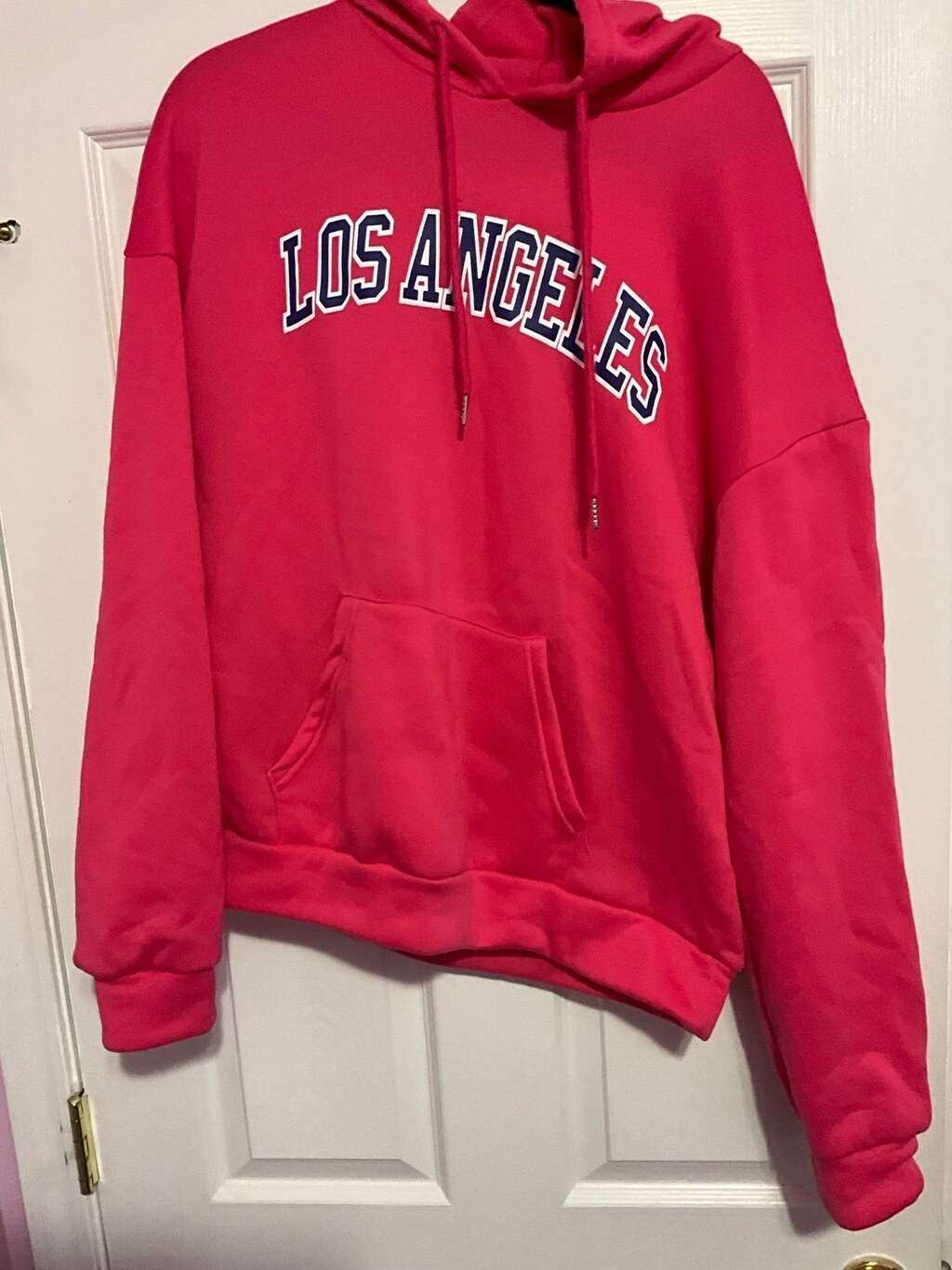 - Women’s Pink Fleece Hoodie – Los Angeles Graphic – Size Large