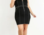 Plus solid bodycon mini dress, sleeveless with a V-neck, half-zip closure, and an O-ring zipper pull