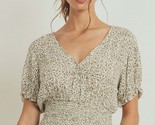 - Women's Puff Sleeve Smocked Waist Surplice Top