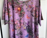 Women’s Purple And Floral Wide Neck Short Sleeve Top Size 2XL