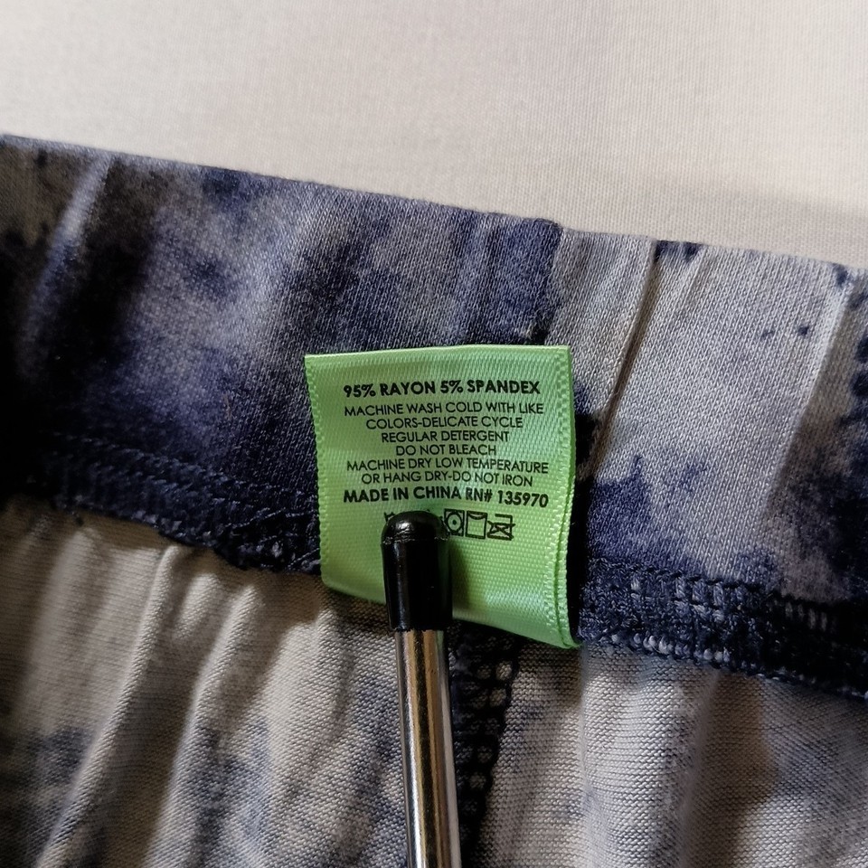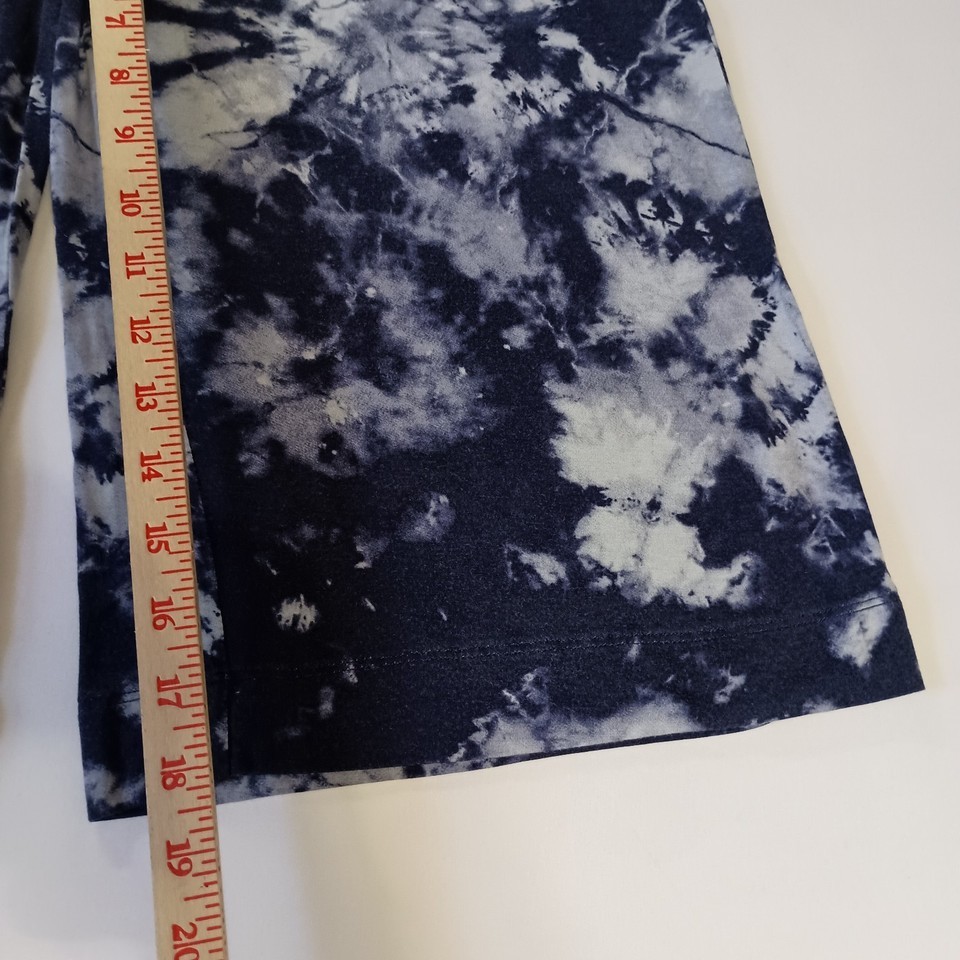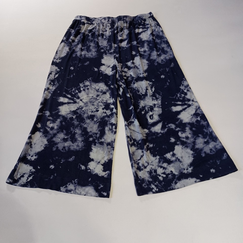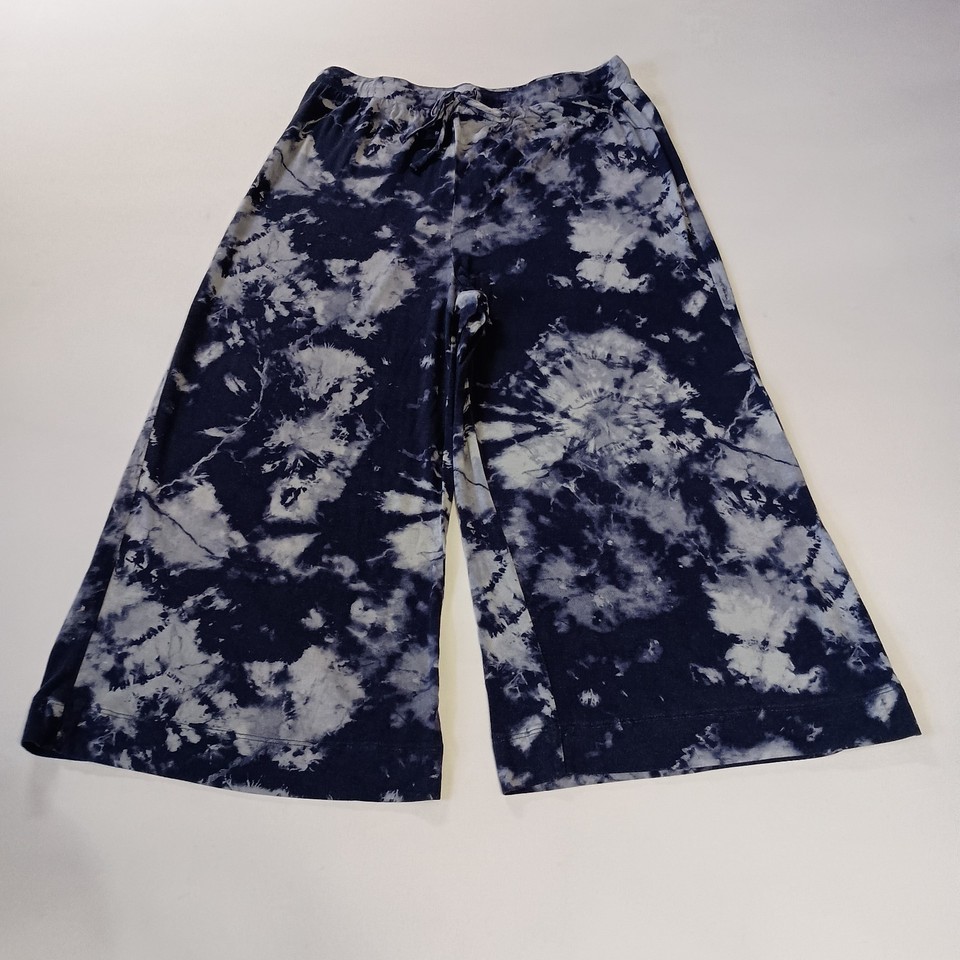 The Honey Dew Women's Size S Multicolor Tie Dye Pants are a stylish and comfortable addition to any casual wardrobe. Made from a blend of spandex and rayon, these wide-leg pants feature an elastic waist for a perfect fit. The geometric tie-dye pattern in vibrant multicolor adds a bohemian flair to the classic wide-leg style, making them ideal for a variety of occasions. These pants are designed for women who appreciate both fashion and comfort in their clothing choices. Normal wear. Sizes are approximate.