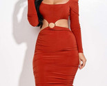 - Women's Solid Long Sleeve Ruched Short Dress With O Ring