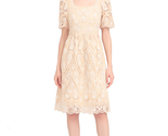 - Women's Square Neck Puffy Sleeve Cotton Lace Eyelet Flared Midi Dress in Beige