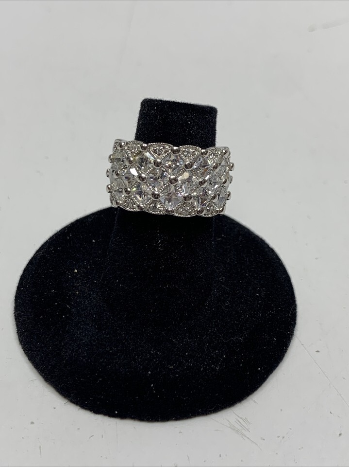 - Women's Sterling Silver Ring Thick Band with Synthetic Stones 925 Size 5 KG