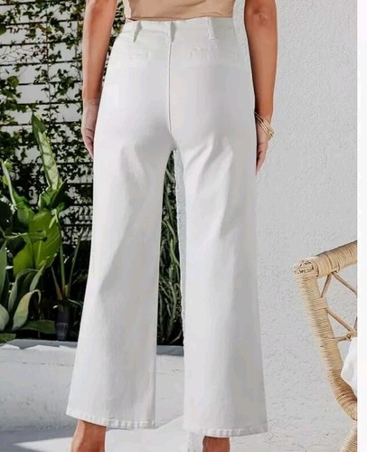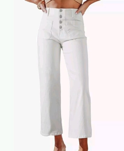 Women's size 8 white Wide Leg Jeans. High Waisted Stretchy fabric . Straight Leg. Button fly