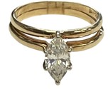 Type: Wedding setWeight: 2.3Karat: 14ktMetal: Yellow GoldGender: Women'sStyle: SolitaireSize / Length: 7Owner applied: 14KStone 1 quantity: 1Stone 1 shape: MarquiseStone 1 color: ClearStone 1 weight (total): 1.0Stone 1 type: Cubic ZirconiaCondition:Used