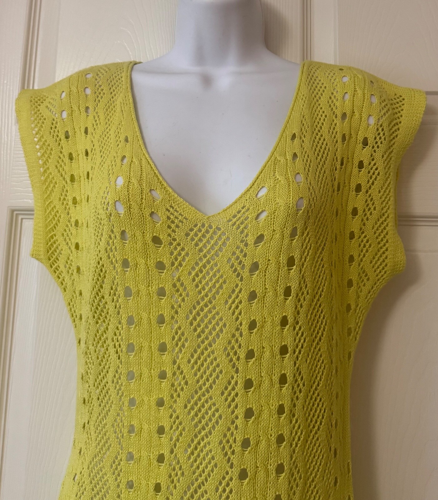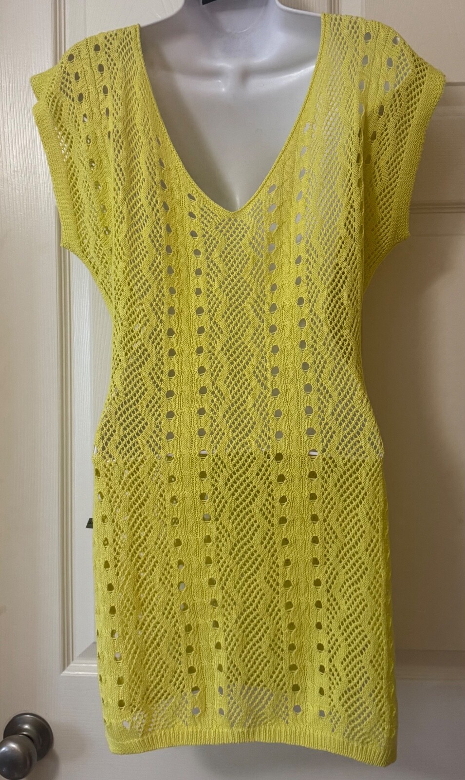 - Women's Yellow Crochet Cover Up 100% Cotton Beachy Short Sleeve Size S/M NWOT