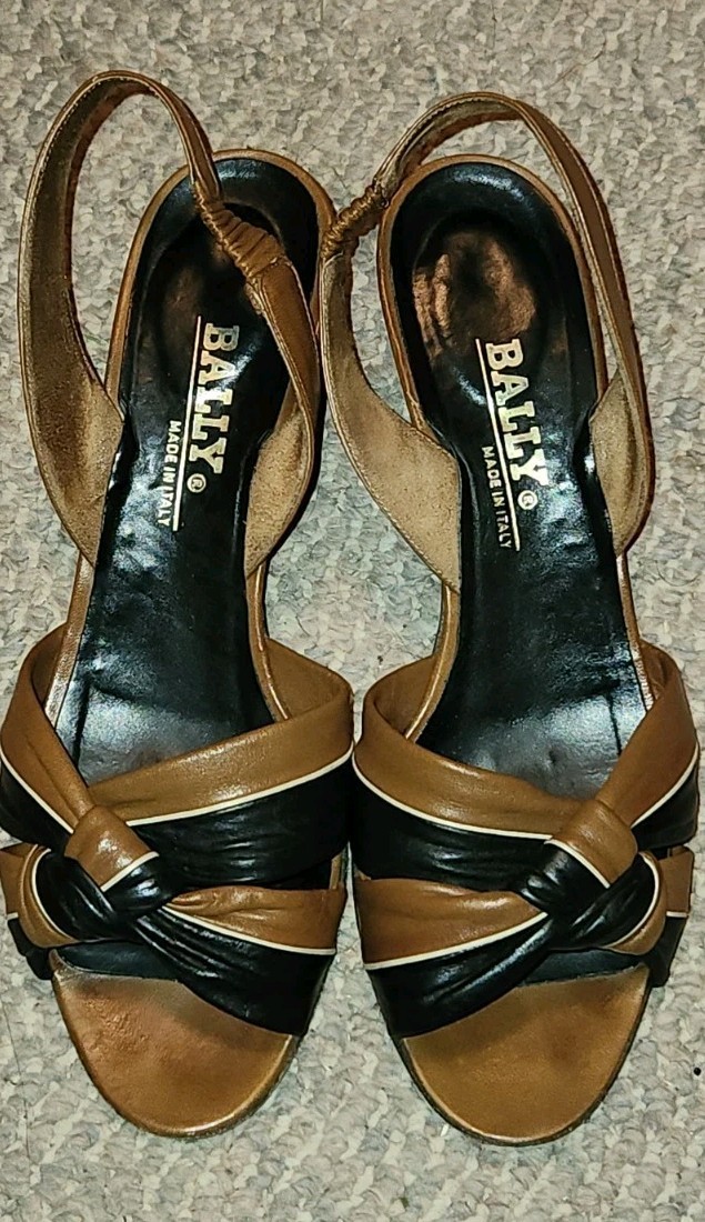 - Womens Bally Italy Leather High Heels 9.5 Black & Brown Knot Vintage?