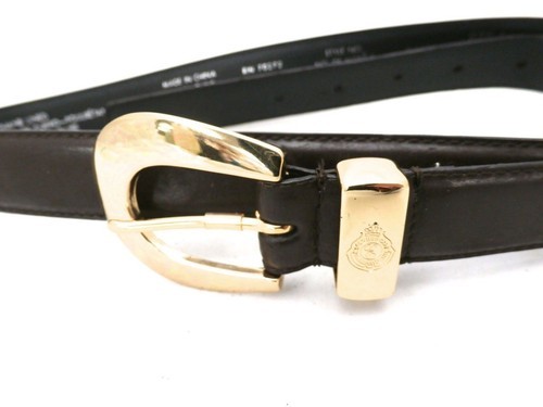 VIntage 1990s womens dark brown bonded leather belt by Elisabeth/Liz Claiborne with 1 ? x 1 ? goldtone buckle.