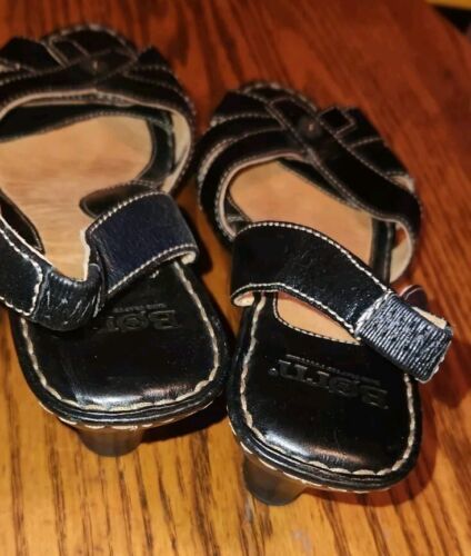 Womens Born Size 9 Black Strap Leather Sandle Heels