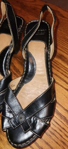 - Womens Born Size 9 Black Strap Leather Sandle Heels